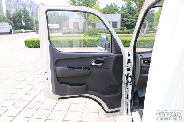 微卡的上车踏脚板位于驾驶室最前方,如果门开角度不够的话,上下车会感觉到拥挤,祥菱M1的驾驶室门开70度左右,再搭配A柱上的扶手,上下车都非常方便。