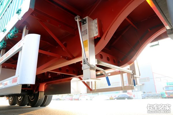而对于大梁部分来说,一方面这里要承担货物的重量,另一方面还要应对路面变化导致的扭转变形,因此对刚性和弹性两个指标都有比较高的要求。如今市面上比较常见挂车大梁采用的是700钢材,而金天马则采用了他们同首钢、北京科技大学共同研发的新型合金配方,其屈服强度能够达到820MPa,抗拉强度能够达到920MPa,在保证整体强度的同时,整车能够减轻150-200kg。