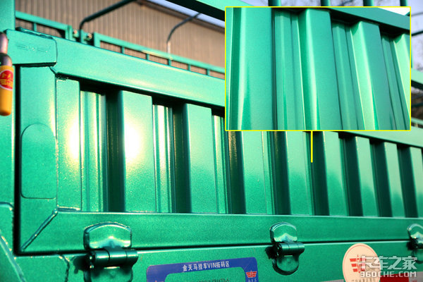 厢板部分,这款车在瓦楞的凹陷处做了起筋处理,能够增强厢板的强度,防止外胀,更加耐用。