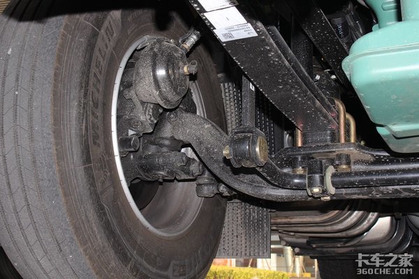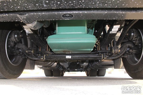 作为一款后提升车型,前桥使用了少片簧设计,后双桥使用了九气囊空气悬架,在空载时可以将后桥提升,不光能够减少轮胎磨损,更能节省燃油,同时舒适性也更好,可谓一举两得。