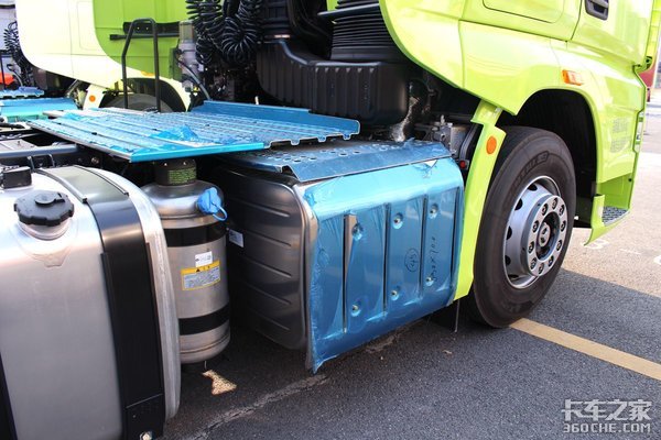 同时底盘部分布局也较国五车型有了一定变化,国六版本车型将电瓶和储气筒进行了后移,放置在了后车架部分,更多的空间留给了国六后处理。空间优化更加出色,布局更为合理。