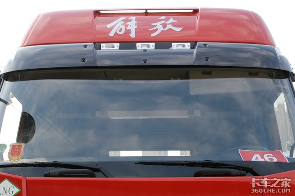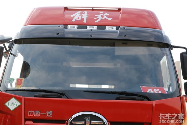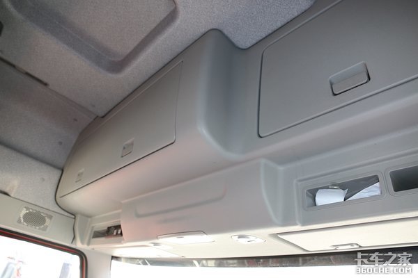 驾驶室顶部采用流线性设计,可以在行驶过程中降低风阻,提高燃油经济性,标配黑色导遮阳板减少阳光对于驾驶员视线造成的影响,而遮阳板两边的示廓灯也可以在夜晚提醒其它道路参与者注意。