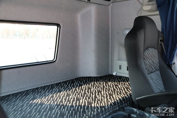 驾驶室采用的是四点空气悬置设计,可以过滤很多来自地面的颠簸,保证驾乘的舒适性,而市场上大多数同级别的牵引车都采用的是两点空气悬置设计。相比之下,新J6P在驾驶室舒适性上更胜一筹。