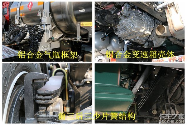 按照49吨的限载规定来计算,整车自重对于车辆日常运营的利润有着至关重要的影响。这款新J6P质惠2.0版本底盘同样采用了轻量化的设计,包括铝合金气瓶框架、前3后3的少片簧结构,轻量化后横梁、轻量化鞍座底板等,整车自重为8.85吨。