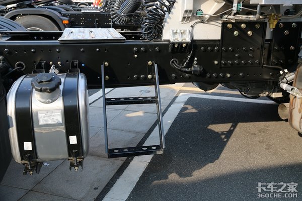 底盘侧方配有蹬车踏板和扶手,上下底盘都非常方便,而且还带有铝合金材质的镂空防护板,可以放置上下车时,对底盘零部件造成一些损伤。