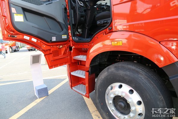 三层镂空蹬车踏板搭配A柱上的扶手,上下车非常方便。而且还可以刮掉脚上的泥土,保持驾驶室内的整洁。