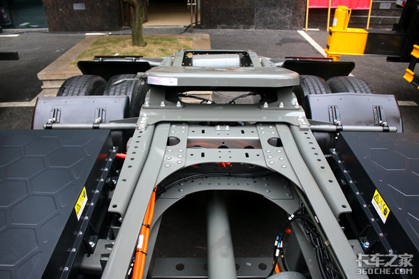 整车底盘采用模块化轻量化设计,同时车架采用270x80x10mm高强度一体成型车架,保证承载力的同时,还降低了整车自重。