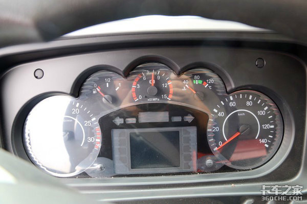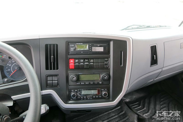 方向盘采用青岛解放的家族式四幅式方向盘,仪表盘采用了解放家族式的五环式仪表,解放J6L中卡也是同样的设计风格。和上一篇的J6L同款都是五环式机械仪表加液晶屏显示。