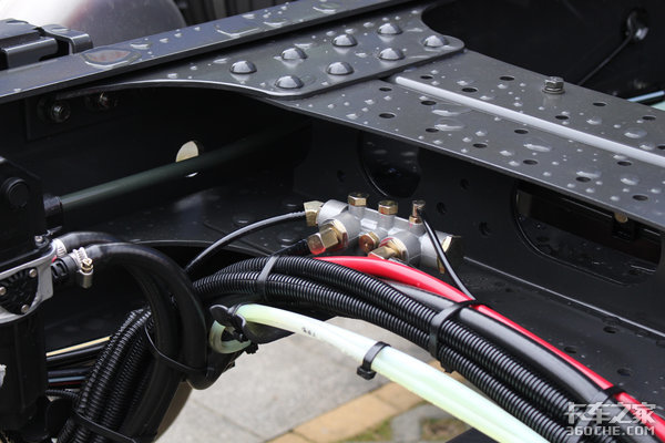 在车架内的小细节:多色区分的管路设计将会使车辆的维修与保养更加便捷,不管是驾驶员还是修理工都可以很轻易的找到目的管线。
