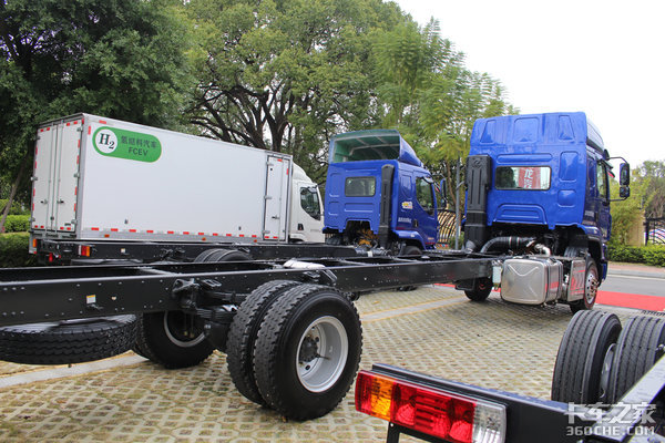 虽然年会现场的样车并没有上装货厢,但我们从厂家得知该款车型最长可上装9.6米车厢,从其可上装的货厢的长度和4×2大单桥18吨的限重来看,该车型更适合拉一些大件轻泡货物和快递等散件。