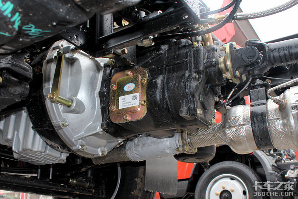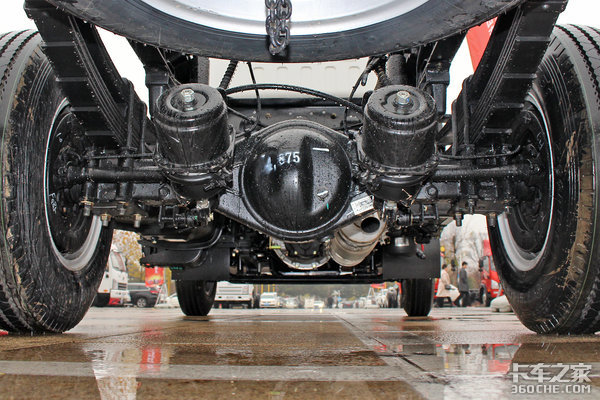 后桥采用3.5吨级桥,速比为4.875。全车制动形式为鼓式制动,采用前3后7+3多片簧悬架,既能降低车身重量,也能保证其承载性。