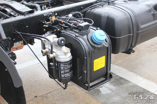 为增强过滤效果,保证发动机平稳高效运行,实拍车使用多级滤芯滤清器,前者为油水分离滤清器,后者为柴油粗滤器。此外尿素箱容积为20L,满足日常使用需求。