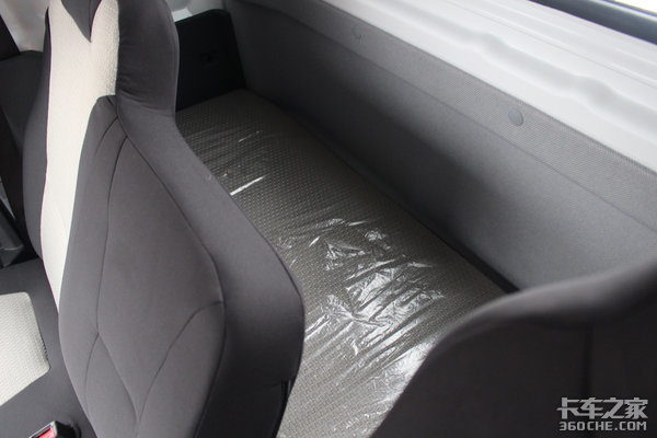 由于该款车型采用排半驾驶室,在座椅后方预留了供驾乘人员休息的空间,可将座椅放倒临时躺下,不休息的时候还能放点大件衣物什么的,相比于单排驾驶室的空间优势显而易见。