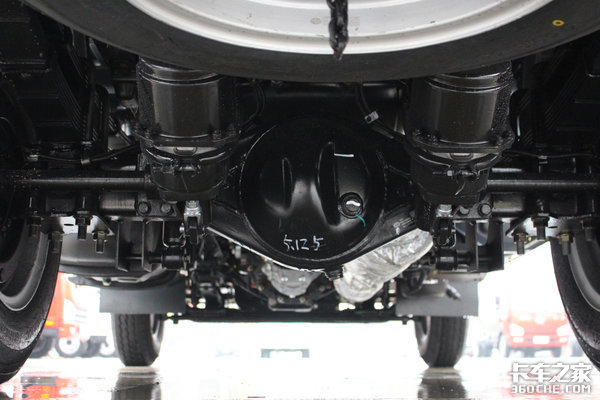 后桥采用3.5吨单级减速桥,速比5.125,悬挂采用3+7片板簧结构,从速比看来,这辆车更偏向中低速。
