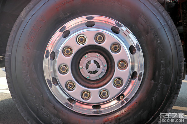 轮胎使用来自双钱的12R22.5型号真空胎,前轮配备铝合金轮圈,使用康迈可视油润滑轮端。