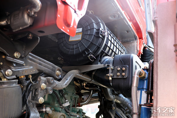 为节省底盘空间,实拍车空气过滤管道安置在驾驶室下方,可增强底盘空间利用率。