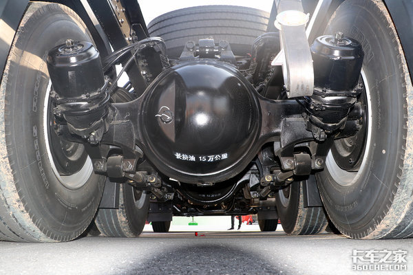 后桥为457升级冲焊桥,带有康迈油润滑轮端,后桥15万公里长换油,速比为3.727,采用断开式平衡轴,可降低自重。