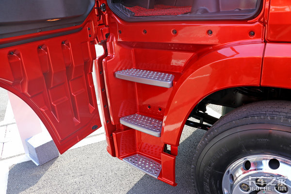 实拍车带有三级登车踏板,为不锈钢镂空设计,并且带有一定倾斜角度,尺寸和进深逐级加大,上下车方便不磕腿。
