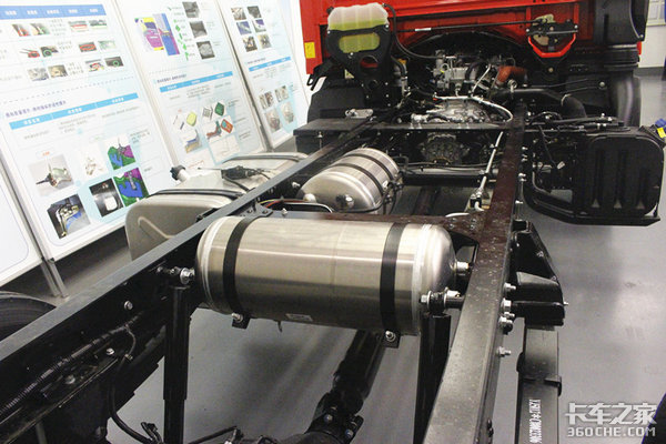 轻量化方面,该车还采用了铝合金储气筒和铝合金的油箱,采用了迎合了当下轻卡轻量化的趋势。