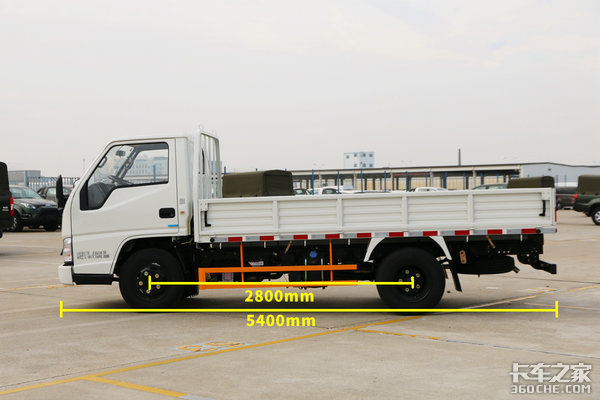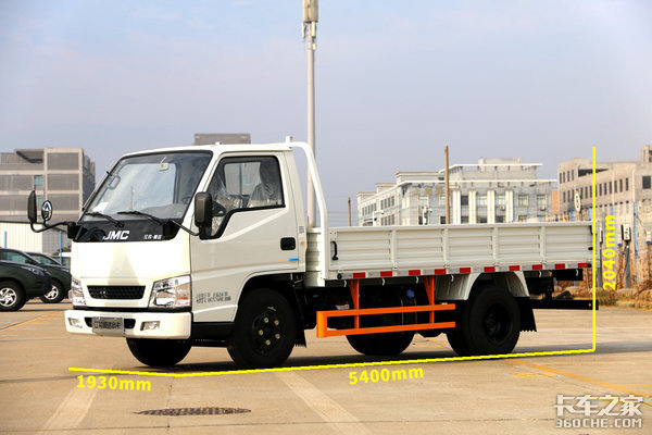 车身尺寸方面,这款单排栏板车的长宽高分别为5400×1930×2040mm,轴距为2800mm。以我们常见的B级轿车帕萨特为例,它的长宽高分别为4933×1836×1469mm,轴距是2871mm。