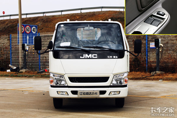 我们实拍的这款车型是国五版的车型,它依然沿用了江铃经典的顺达窄体驾驶室,不过在配置上进行了一些提升,标配了电动车窗,并且主驾一侧具有一键降窗的功能。