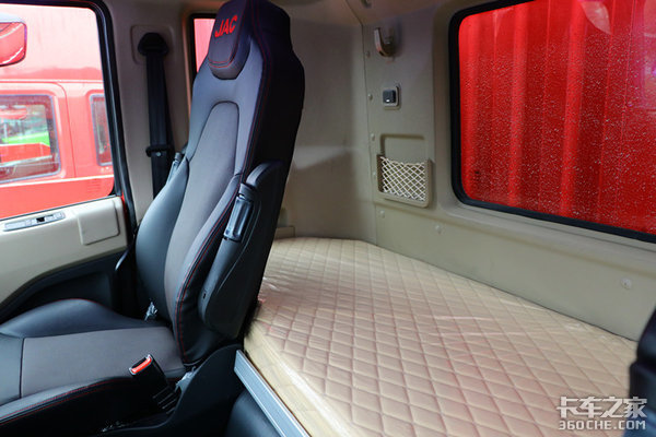 下铺最宽达到940mm,卧铺使用针织面料和聚氨酯发泡材质,手感和舒适性都非常不错,能够保证驾驶员得到良好的休息。