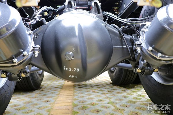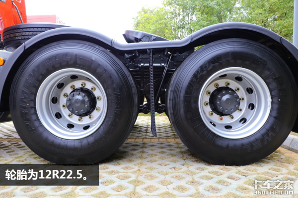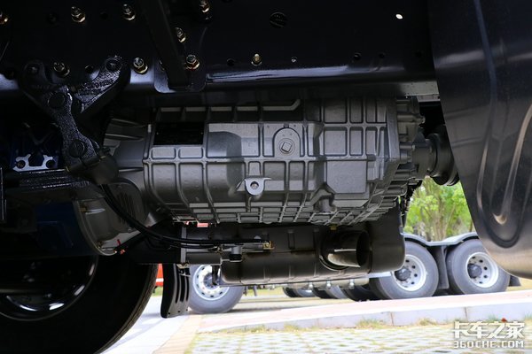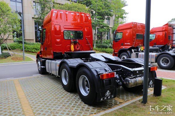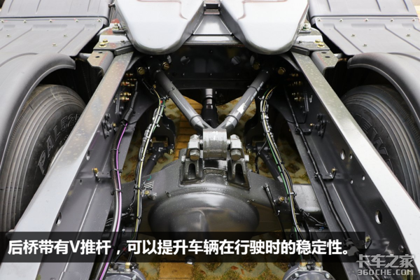 后桥采用的是2*440后桥,速比为3.7,悬架方面则采用的是前2后4少片簧的设计,少片簧设计也是如今轻量化设计牵引车上常见的配置。