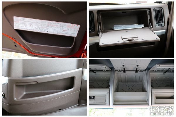 整个车辆上的储物空间非常丰富,比如驾驶室顶部的储物箱、门板两边的储物盒、副驾驶前方的手套箱以及中控上的储物盒,可以分类放置各种随车物品。