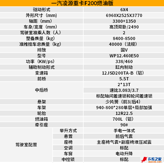【卡车之家 原创】俗话说:工欲善其事必先利其器。降本增效是现在所有物流企业的追求目标,而促成这一目标的实现就必须要靠一款高效的运输装备。一汽凌河旗下明星产品F200重卡系列牵引车是基于中国物流高效发展新阶段,降本增效的新需求出发设计研究的。今天,我们就来了解一下这款F200有哪些配置。