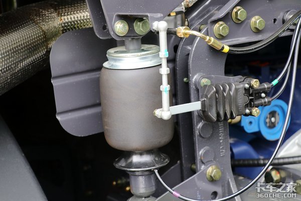 驾驶室采用的四点气囊减震全悬浮的设计,可以有效的过滤来自地面的颠簸,相比于弹簧减震,舒适性更好。目前国内载货车很多都采用的是弹簧减震或者两点气囊减震,乘龙H7在这点上的配置非常厚道。