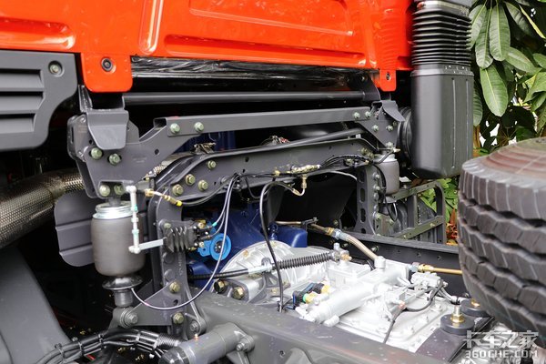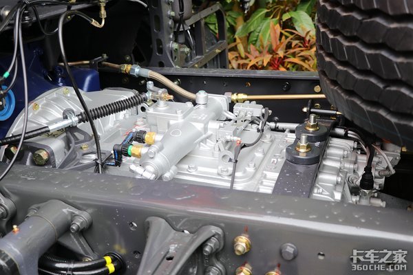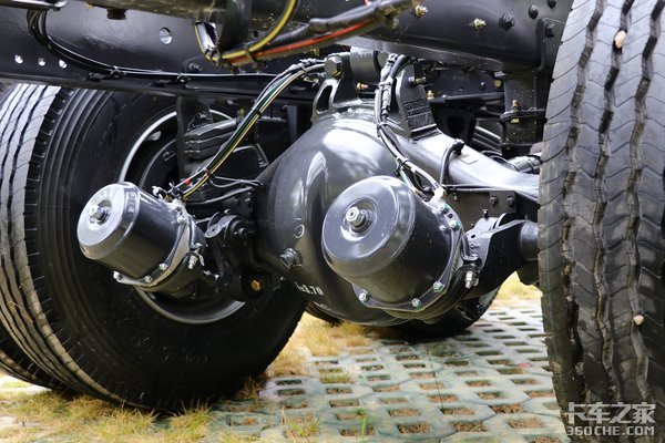 后桥采用的是2*440后桥,速比为3.7,标配ABS,后桥采用的是油润滑,可以减少维修保养费用,为了保证整车有出色的制动效果,这款车采用的是加宽制动器。