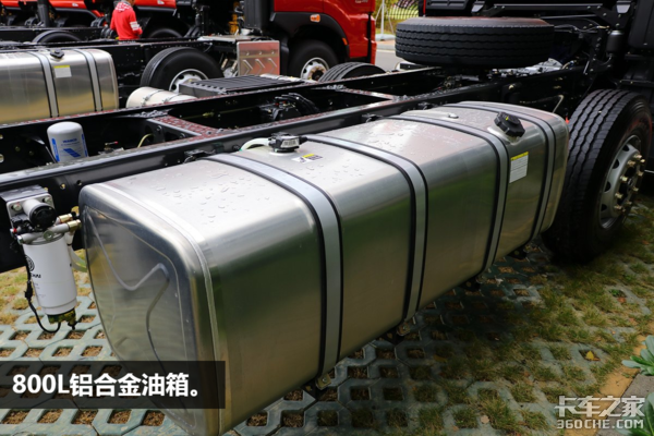 另外,为了降低整个车辆的自重,在法规允许范围内多装货,这款乘龙H7多个零部件都采用了铝合金的材质,比如变速箱壳体、贮气筒、油箱等。