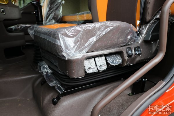 驾驶室采用的全悬浮设计,主驾座椅采用的气囊减震座椅,靠背仰角、座椅位置、腰部支撑、气囊软硬等都可以根据自己的用车喜好进行调节,另外,还带有快速充放气的功能。
