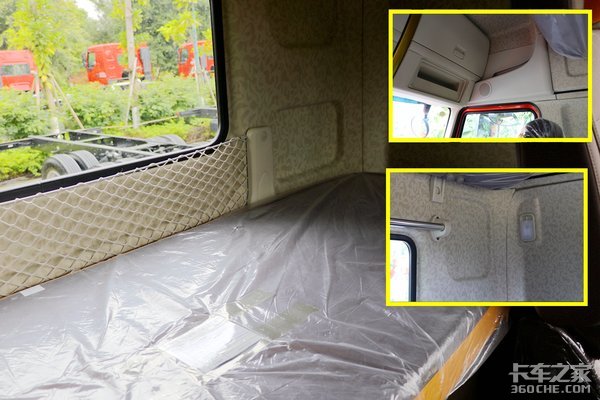 卧铺尺寸表现依然很不错,最宽处达到了810mm,而且卧铺旁边设计有网兜,头顶还设计了小灯,方便卡友们晚上起夜。上卧铺两边还带有储物盒,同样方便上卧铺的驾乘人员放自己的随身物品。