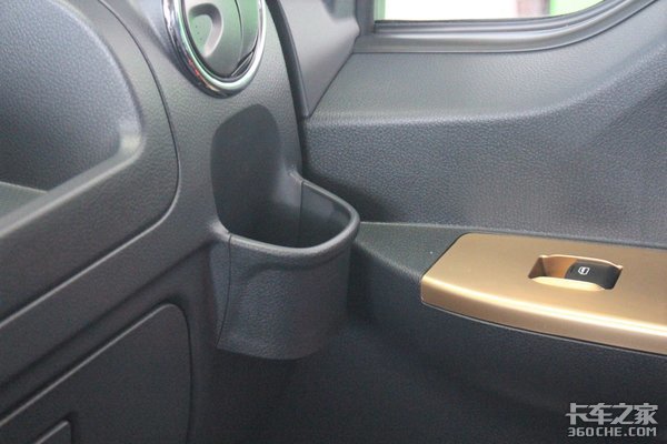右侧的水杯架设计在了空调出风口前方,在冬天可以用暖风加热冰凉的瓶装水,不过杯架尺寸仅支持普通规格的瓶装水,稍微大一点就装不进去了。