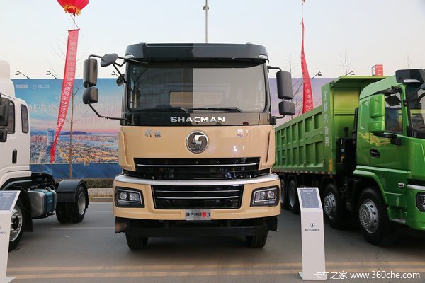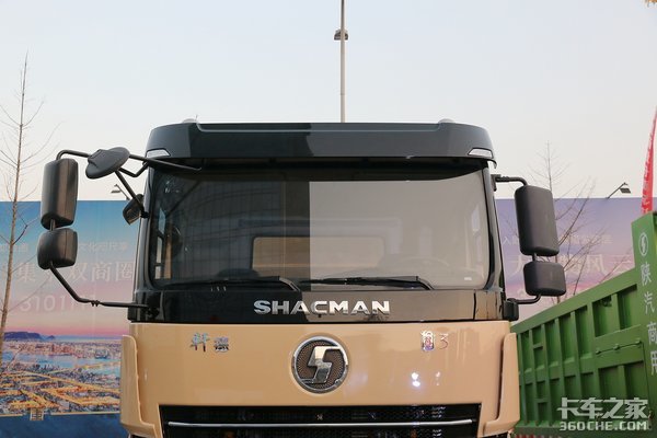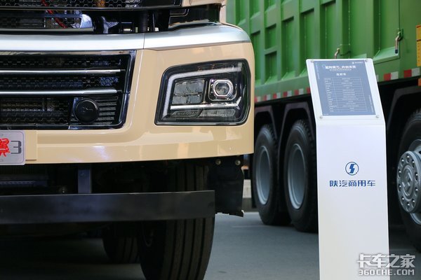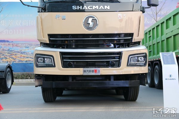 立体组合式大灯集成设计了远近光灯、转向灯、日行灯以及雾灯,内部采用了比较流行的熏黑式设计,镀铬装饰条开叉小尾巴、SHACMAN的标识,都是整个灯组的小亮点,这个设计确实用心了。