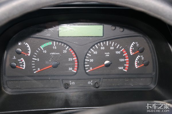 仪表盘的设计则比较偏向于传统重卡的设计,没有采用大面积显示屏,依然是以指针式仪表盘为主,并且转速仪表盘中发动机经济转速区域用绿区标注,可以提醒驾驶员在行驶中保持发动机处于经济转速中。
