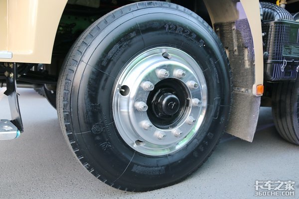 轮胎规格为12R22.5,另外也可选装铝合金轮辋。