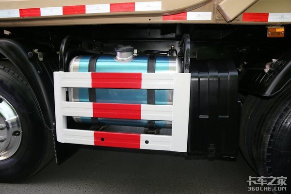这款车主打城建渣土运输,因此对于续航里程要求并不高,匹配的是270L的铝合金油箱,铝合金的材质可以降低整车自重,270L的油箱容积设计可以在保证续航的同时,减轻燃油的重量,不侵占可承载货物的重量。