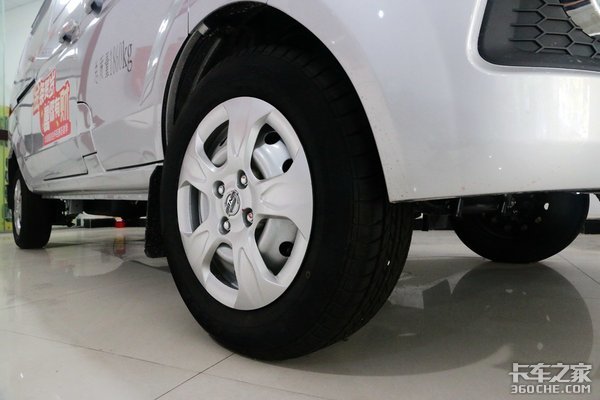 实拍该车轮胎规格175R14。前桥采用麦弗逊悬架,盘式制动;后桥采用5片钢板弹簧,鼓式制动。全系标配ABS。