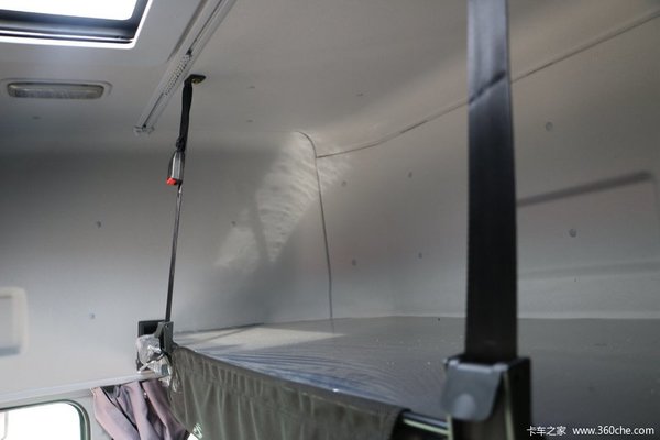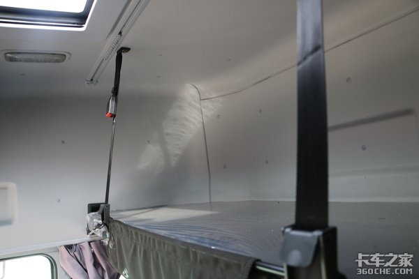 上铺防滚结构为安全带设计,相较硬邦邦的铁杆来说,我更喜欢这样的设计,并且在顶部还有可以安装帘布的滑轨设计,可以为商铺营造一个良好的休息环境。