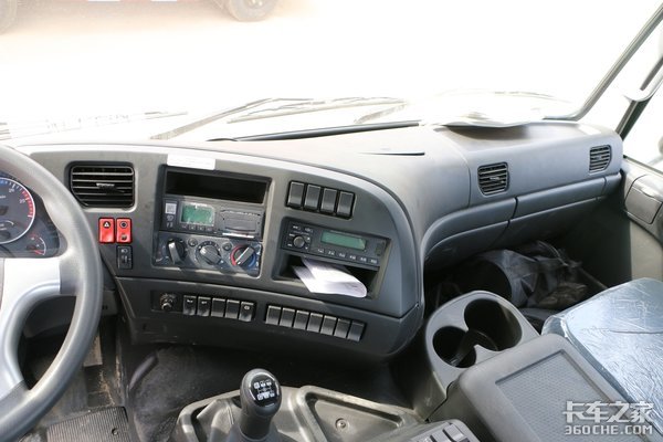 来到车内我们发现,天龙VL的内饰部分风格依旧简洁,但实用性相当的不错,比如这个在门板上方的烟灰缸,恰好是卡友非常顺手的位置,相比中控台内的布局来说更方便了。