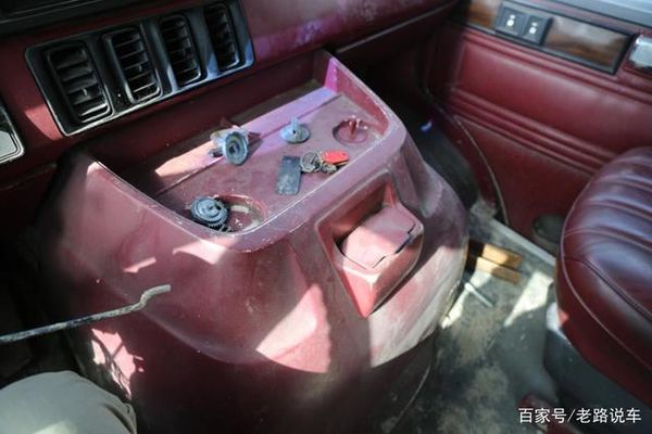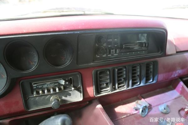 中控台和仪表盘是连在一起的,中控台上还有电瓶表和油温表,黑色工作区域最右端的是卡带式收音机。这款收音机的尺寸偏大,功能非常齐全,在90年代初应该是个不错的配置。下半部分红色工作区域则是空调的调节面板和出风口。