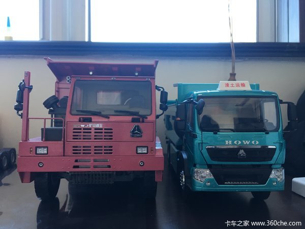 这台模型它并没有柔和圆弧的线条,各处体现的都是刚强的坚实气息。从它开始也衍生出了很多的车型:最早的HOWO矿山霸王(70矿车)、HOWO矿山勇士(50矿车)两兄弟,以及我们在码头上所能见到的重汽豪威(HOVA)。