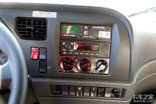 中控上方集成了行车记录仪、多媒体操作系统和空调控制面板,更多按键被放在了下方,多媒体系统支持USB模式。值得一提的是,操作界面按键均为中文标识,卡友操作起来更方便。