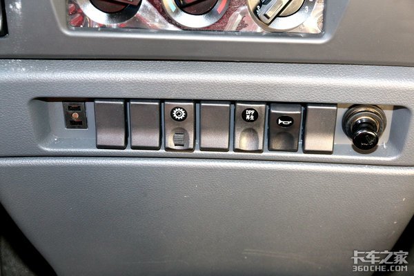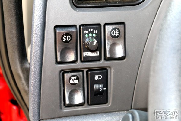 下方按键设计较为简单,分别为取力器、DPF再生、喇叭转换开关,有人可能会问一辆栏板车为什么还有取力器,其实这是一个预留空位,为以后增加其他设备“打基础”。