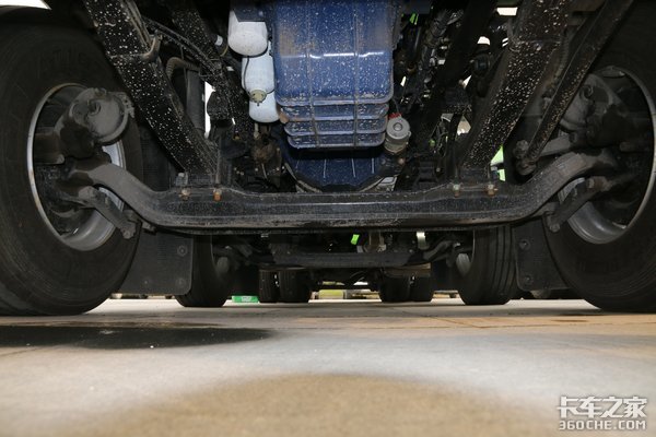 前桥采用的是5.5吨MAN技术前轴,搭配三片钢板弹簧,并且前桥采用的是盘式制动。