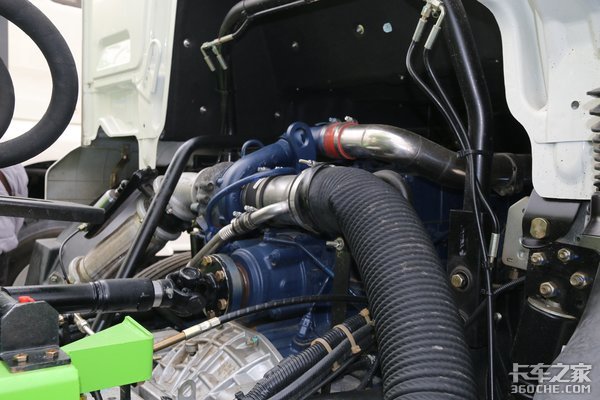 动力方面,这款车搭载的是潍柴WP7.340E53发动机,7.47L排量,最大输出功率250kW,最大340马力,在1200-1700转时可以爆发最大扭矩1250N.m,通过电控高压共轨+SCR的技术可以达到国五排放标准。