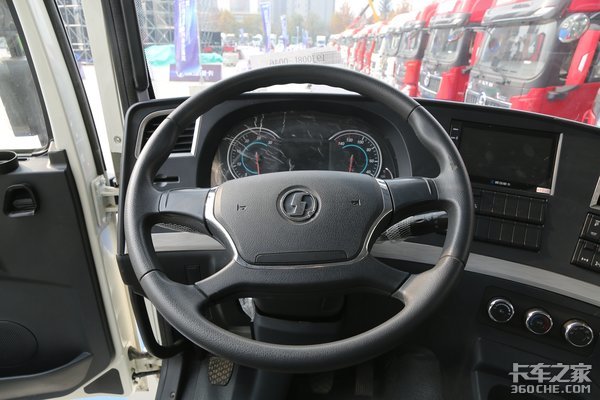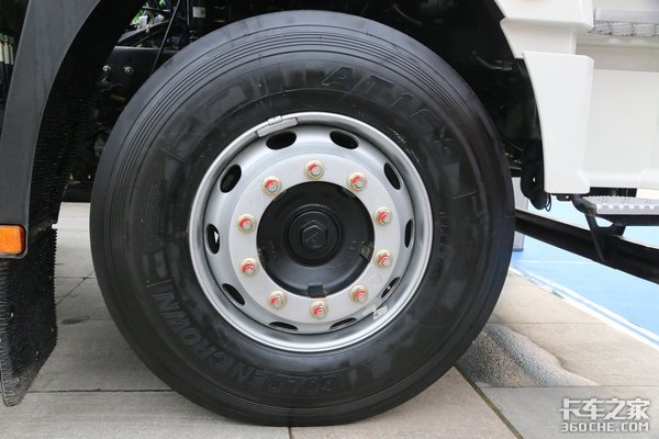 轮胎规格为12R22.5,并且匹配的是轻量化轮辋,同样是为了降低车辆自重。