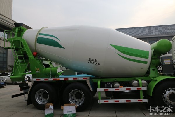 上装部分,这款混凝土搅拌车可装载混凝土容积为7.95立方米。
